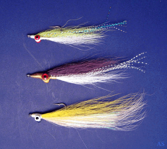 The Clouser is a popular saltwater fly for fishing for striped bass. The Clouser is a weighted fly; choose it when the fish are deep.