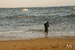 We arrived on the shoreline at the south side of the light house at what is known as "Turtle Cove." We could see blitzing fish about 200 yards out in front of the light house. Boats were circling the feeding frenzy. We were told that some were jigging diamond jigs and bucktails. Many were fly fishing. All were catching fish.